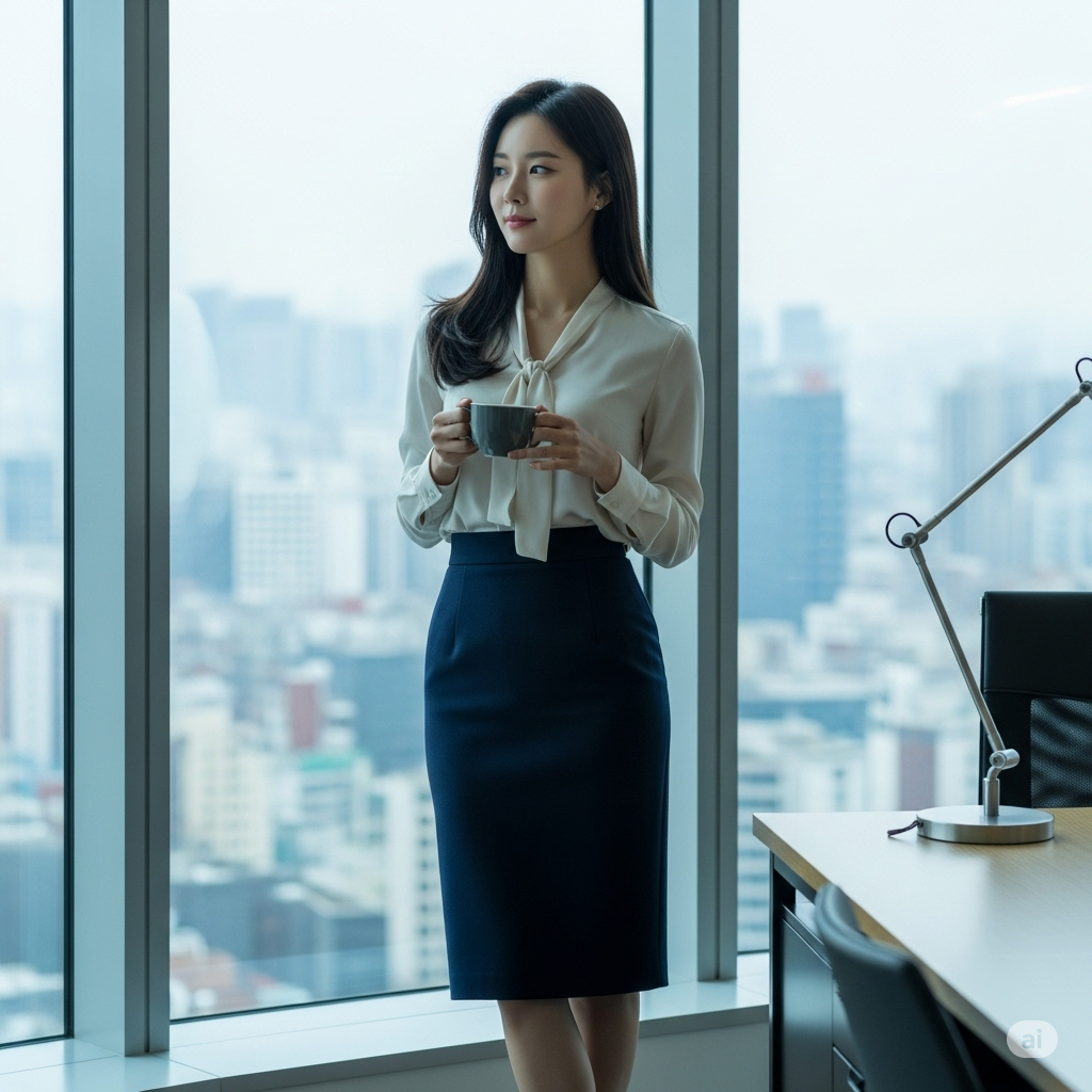격식이 필요한 날, 나를 더 프로페셔널하게 만들어 줄 오피스룩! 무릎 기장의 [H라인 스커트에 고급스러운 실크 블라우스]는 시대를 초월하는 클래식 조합이에요. 여기에 깔끔한 펌프스를 신어주면 커리어우먼 포스 완성! 조금 더 개성을 표현하고 싶다면, 차분한 컬러의 플리츠 스커트에 부드러운 스웨터를 매치하는 것도 좋은 방법이랍니다.