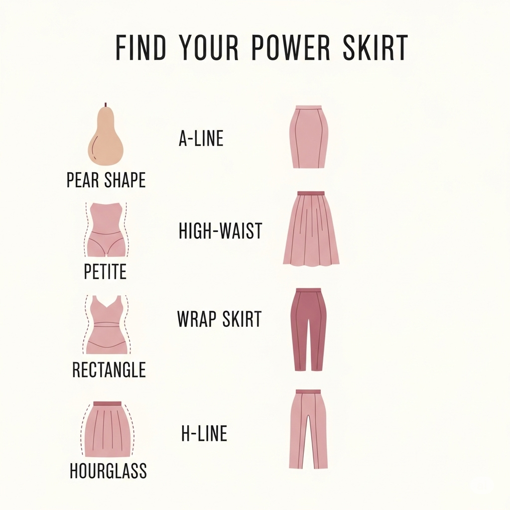 | 넓은 골반 | H라인/펜슬 스커트, 머메이드 스커트 | 숨기지 말고 드러내세요! [몸에 맞는 핏]이 가장 중요해요. |